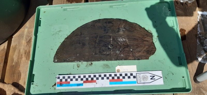 part of a barrel lid with plug on marking
