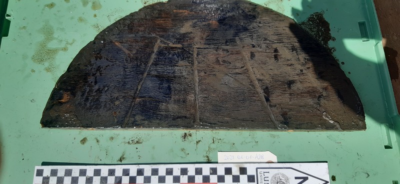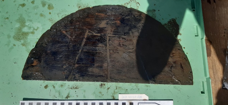 part of a barrel lid with marks