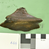 A small iron anchor is lodged in the trench. The iron is badly degraded, and a fluke that broke from it was recovered (find A8). The anchor might be original to Gribshunden, perhaps a kedge anchor or an anchor for the ship’s boats, stored in the hold. Alternatively, it might be anachronistic, introduced into the wreck during salvage efforts in the decades after the sinking event, or at some later point when a vessel seeking shelter in the anchorage inadvertently caught and lost its hook in the structure.