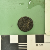 Several disarticulated brass rings, presumably from mail armor, were recovered from the trench. While most of these were the usual riveted wire loops, two were solid circles apparently cut from brass sheet (figure 10). These may have served a different and unknown function, unrelated to armor.
