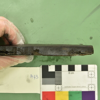 Gribshunden was among the first generation of ships designed specifically to carry artillery. The ship carried a mixed battery of large gunpowder weapons, represented archaeologically by the remains of several wooden gun carriages. Nine carriages were recovered from the site in previous interventions (Einarsson and Wallbom, 2002). A tenth carriage was recovered during the 2021campaign. The environmental conditions at the wreck site have reduced the iron elements of most of the guns. However, one of the metal detection targets we identified in November 2020 proved to be a very large wrought iron gun, inverted and apparently intact in its carriage, and with two breech chambers adjacent to it on either side. We documented this weapon, and left it in situ off the port quarter of the wreck for possible future recovery (See figure 1 & figure 4). We recovered one of the breech chambers (find A7), and at LU scanned it with X-Ray Computed Tomography and performed chemical analysis of the residue contained within the chamber. Results are pending, and will be published in scientific journals and presented at the 7thInternational Congress of Underwater Archaeology in Helsinki, June 2022.