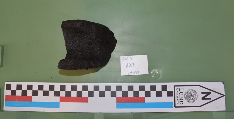 hollowed wooden object possibly used for a waterway from the rudder area